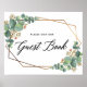 Este é um belo produto de sinais de casamento para o livro convidado com texto de script e quadro de ouro de eucalipto