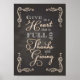Tendy Chalkboard poster de outono com "Dê-nos um coração que seja cheio de Obrigados e Doando" na frente. Projetado por Imagem Simples da Robin; gráfico da Pie de Amorango.