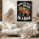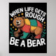 Esta ilustração vibrante apresenta um urso alegre, colorido de gravata, segurando um pote de mel. O texto "Quando a vida se torna dura, seja um urso" rodeia o urso, criando um tema motivacional e elevador. O design colorido e dinâmico capta um senso de resiliência e positividade, perfeito para transmitir uma mensagem de força e perseverança diante dos desafios.
