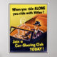 Isto transmite aos cidadãos a mensagem de que o petróleo e a borracha, onde mercadorias escassas, e dirigir sozinhos, estava essencialmente a retirar estes recursos dos soldados. Ilustrada por Weimer Pursell em 1943.