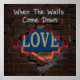 Esta design capta uma poderosa metáfora para revelar uma verdade oculta. Apresenta uma parede de tijolos com intempéries, com uma abertura agitada, através da qual um sinal com a palavra "LOVE" é parcialmente visível. O sinal tem um estilo limpo e arrojado com um brilho quente e vermelho. A frase "Quando as paredes caem" é escrita em estilo de grafite leve no tijolo, simbolizando o momento que escolhemos revelar o que foi escondido.
