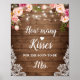 Quantos Beijos Sinal de Jogo de Chá de Noiva Rústico com Floral Rosa.