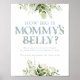 Um jogo divertido para seus convidados adivinharem o tamanho da barriga da mamãe. Um elegante e divertido cartaz de chá de fraldas com tipografia azul empoeirada moderna e bonito folhagem botânica. Projetado por Thisnotme©
