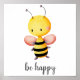 Poster Quarto Infantil Abelha Voadora Fofo Fique Feliz