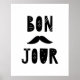 Decore o quarto do seu pequeno(a) com este adorável pôster preto e branco moderno escandinavo Bon Jour com bigode. © Julie McIver