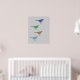 quatro aves animais berçários impressão verde, azul, castanho, roxo