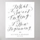 Sinal de Casamento de Script de Caligrafia Elegante - Que final doce para um novo começo. Entre em belas letras de rico e seu texto personalizado. Um na moda, mas simples, design formal em preto e branco ou qualquer cor de fundo que você escolher. Basta clicar no link personalizar mais, mostrado na área de personalização de texto à direita, e escolher seu fundo de cor personalizado. Este poster de placa faz com que seja rápido e fácil criar acréscimos incríveis à decoração do casamento. Os sinais podem ser ampliados, há muitos tamanhos a serem escolhidos, assim como opções para enquadramento e correspondência personalizados. sinalização personalizada de casamento. ~ Verifique meu compro ou coleção abaixo para ver mais sinais complementares do seu casamento