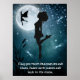 Este Poster de dança irlandês apresenta uma menina silhueta dançando calçado duro com uma fada, libélulas, lua de cheio e um céu cheio de estrelas. No fundo da poster é a citação inspiradora: "Que você toque libélulas e estrelas, dança com fadas e fale com a lua..."