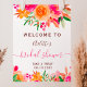 Chá de panela de boas-vindas a cores florais modernas, de cor branca, cor de laranja brilhante, cor de pêssego, cor de rosa e flores verdes, buquê e letra elegante de script.
