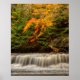 Lindas cores do outono nas árvores moldam esta queda-d'água ampla. A cachoeira é chamada Quarry Rock Falls e é encontrada na Reserva de Chagrin Sul dos Metroparques de Cleveland Ohio.