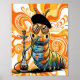 Este é um poster de qualidade de excelente com um design atraente de um cachimbo colorido de prostituta, lagarta em um berço e óculos. Tem um fundo psíquico, cor de laranja, amarelo e branco da década de 1960 e a pergunta "Quem és tu?"