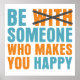 Esteja com alguém que te faz feliz. O COM está riscado saindo de Seja alguém que te faça feliz