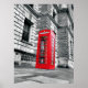 Colocada contra um fundo preto e branco, esta icônica cabine vermelha em Londres está esperando alguém ligar para casa.