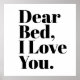 Mostre um pouco de amor à sua cama confortável e adicione personalidade ao seu dormitório ou ao seu quarto com este poster expressivo como arte de parede. O texto preto preto preto preto preto é mostrado em um fundo branco.