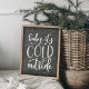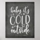 Adicione um toque rústico ao seu decoro de férias com este impressão de vinho armado. A design com base na tipografia apresenta a frase "bebê lá fora está frio" em letras brancas, do tipo, acentuadas com flocos de neve, sobre fundo de quadro de discussão.