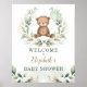 Este elegante poster de boas-vindas apresenta um ursinho de pelúcia bonito segurando um balão em forma de coração, enquadrado com uma linda camada de água verde