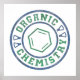 Química orgânica - letras colegiais e anel de benzeno em azul e verde em apuros.