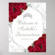 Poster Quinceanera Floral Vermelha e Prata Bem-vindo