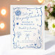 Ponha o tom para um casamento divertido e na moda com este sinal de boas-vindas, inspirado em francês! Apresentando ilustrações lúdicas de arte em linha azul de uma bola de disco, champanhe, arcos e florais, este design ao estilo retrô convida os convidados a comemorar no estilo. Perfeito para casais que amam um toque de charme picante e vintage em seu dia especial.