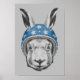 Este design apresenta um coelho vestindo um capacete motrociclista de estilo antigo.