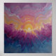 This vibrant poster features an abstract sunrise painting with swirling pinks, purples and golds melting into deep blues - fluid, radiant texture evoking calm energy.