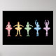 Uma fileira de bailarinas bonitinhas, coloridas com arco-íris, mostrando as posições tradicionais de balé.