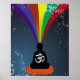 Poster de budismo muito colorido com uma forma buda sentada em uma flor de lótus com símbolo Aum no centro! Fundo espacial com arco-íris colorido vindo de Buda! Interprete como quiser, projetado para ser meditativo e relaxante!