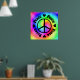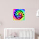 Poster de Paz e Amor - sinal de paz e corações num fundo espiral arco-íris.