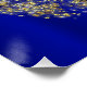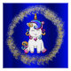 Um adorável poster unicórnio com um pequeno desenho animado, unicórnio arco-íris, colocado contra um fundo azul real cercado por um grande anel de brilho ouro. Esta poster parecia excelente no quarto de uma garotinha, ou fazia uma decoração de excelente para uma festa de aniversário de unicórnio.