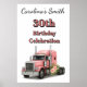 Celebre em estilo com este único convite de aniversário de motorista de caminhão feminino! Com um detalhado caminhão cor-de-rosa com sotaques florais de cor-d'água, este elegante design é perfeito para mulheres em caminhonetes, caminhoneiros de senhoras, ou qualquer pessoa que ame grandes plataformas com um toque feminino. Personalize com seu próprio nome, data, hora, local e detalhes de RSVP. Excelente para aniversários de marco, festas de aposentadoria ou comemorações surpresa para a Rainha da Estrada.