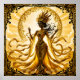 "Uma cena de marionete-sombra Wayang Kulit mesmerante, com uma deusa dramática e bela, intricadamente projetada com os tradicionais motifs japoneses e balineses. Sua elegante silhueta é enfeitada com delicadas entalhes e padrões de ouro elaborados, refletindo a arte da peça clássica de sombra. A deusa exude a graça divina, com roupas fluentes e joias de ornamentado jorrando em tons de amarelo claro e ouro líquido brilhante. O fundo brilha com uma radiância de ouro suave, melhorando o ambiente místico da cena. Toda a composição é enquadrada por uma elegante fronteira ornamental com detalhes finos e giratórios, lembrando entalhes antigos do templo. Efeitos de iluminação sutis adicionam profundidade e contraste, enfatizando a intrincada essência de artesanato e narrativa da arte Wayang Kulit."