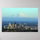 Imagem aérea de Seattle, Washington com o magnificiente Monte Rainier como pano de fundo.