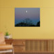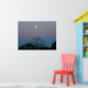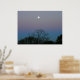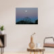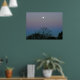 Lua cheia no nascer do sol. Céus cor-de-rosa azuis.