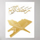 This graceful wall print features a golden illustration of the Quran resting on a traditional wooden rehal, symbolizing devotion and reflection during the holy month of Ramadan. Above the book, the Arabic phrase “رمضان كريم” (“Ramadan Kareem”) is rendered in elegant gold calligraphy, evoking blessings and reverence. The luminous tones and balanced composition make this artwork ideal for prayer spaces, seasonal decor, or heartfelt gifts. It beautifully captures the essence of Ramadan—faith, forgiveness, and spiritual renewal.