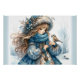 Póster Rapariga de inverno com pássaro na Casaco azul