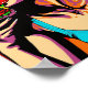 Este poster apresenta uma design divertida e inspirada por retratos que combina elementos da arte pop e da cultura de diners vintage. A imagem central é de uma garota alegremente se unindo em um hambúrguer suculento, cercado por gráficos ousados e coloridos. O efeito geral é lúdico e certamente adiciona um toque de capricho a qualquer espaço.