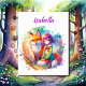 Arte aquosa bonito personalizada para o quarto de uma adolescente. Uma raposa com uma anime garota rosa, verde, azul e laranja.