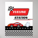 Uma decoração agradável para a sua festa de aniversário. Um tema de aniversário do carro de corrida vermelho rápido.