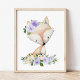 Poster Raposa, Animais Da Floresta, Boho, Flores Roxas