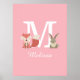 Este poster rosa fofo apresenta um filhote de raposa e coelho da floresta em floresta sentado em ambos os lados do monograma e nome. Projetado por Thisnotme©
