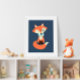 Ilustração fofa de uma adorável raposa vermelha usando um monóculo e uma gravata borboleta, podendo ser personalizada com um nome ou uma mensagem personalizada e ser usada como o toque final perfeito para um berçário, quarto infantil, sala de brinquedos, sala de aula, quarto de estudante, etc.