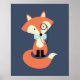 Ilustração fofa de uma adorável raposa vermelha usando um monóculo e gravata borboleta, podendo ser personalizada com um nome ou mensagem personalizada e ser usada como o toque final perfeito para um berçário, quarto infantil, sala de brinquedos, sala de aula, quarto de dormitório, etc.
