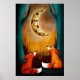 Poster Raposas da Floresta Noturna de Lua-de-Cuta Raposas