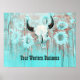 Este poster de negócios apresenta os girassóis ocidentais com um crânio de touro rodeado com chifres e um design de textura floral rústica do país. Cores marrons de madeira de celeiro. O vaqueiro da fazenda inspirou. Imagem copyright Marg Seregelyi Fotografia.