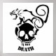 Rato irritado subindo num crânio negro. A boca dos roedores está aberta, com dentes afiados aparecendo. Os bigodes dos ratos estão em formas tribais. Com texto modificável que diz: "Morte"