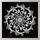 Esta mandala branca senta-se sobre um fundo preto. Parte da coleção Payon Mandala.