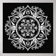 Esta mandala branca senta-se sobre um fundo preto. Parte da Coleção Rosenn Mandala.