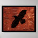 Uma simples silhueta preta de um Raven (Corvus corax) sobre uma imagem de fundo do reverso avermelhado (dentro) do latido de pássaros. A imagem raspada recebeu um ligeiro efeito "áspero" ou "vestido". Adicione seu próprio texto.