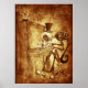 Este design original pintado por Chaos, o Vermelho, apresenta este sujeito esquelético tocando piano em um tom de sépia adorável em uma boate enfumaçado azul vista.