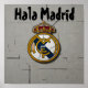 Wall Art & Décor: Uma tipografia ousada e moderna "Hala Madrid" contra um fundo geométrico minimalista